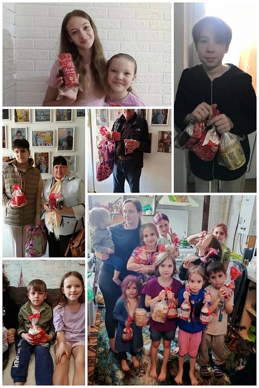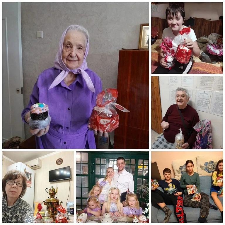 Сестры милосердия передали угощения своим подопечным, поздравив ветеранов Ленинского совета ветеранов, подопечных Комплексного социального центра по пер.Семашко 1 Б, одиноких пожилых подопечных, семьи многодетных и малообеспеченных, из них 47 детей, а также пожилых, пристарелых подопечных и инвалидов.Со светлым праздником Пасхи поздравили, находящихся на попечении сестричества детей - инвалидов из Дома творчества детей и молодежи. Также подарки получили 43 сестры милосердия. Все остались довольны и благодарны за качественные и вкусные куличи!